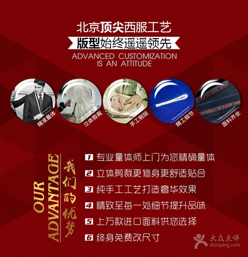 “一人一版”,根据客户的身体数据和款式选择,来全新地制版,以伦敦萨维尔街最为出名。全定制在款式选择上给予客户很多选择空间,同时也要求你对定制有所了解,以便适当地指挥裁缝。华名人西装定制会所为你精心打造每一个细节,衬托出更完美的你。www.huamingren.com